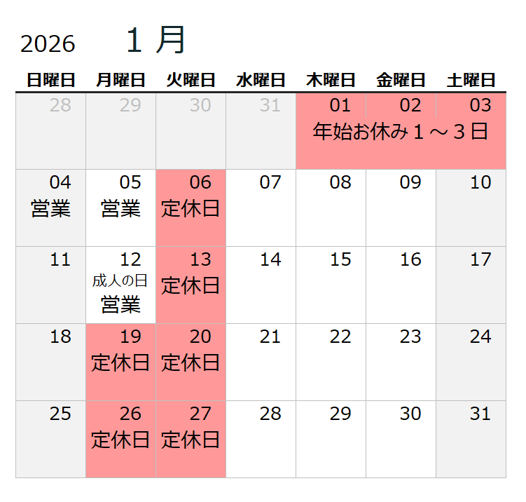 1月のお休み